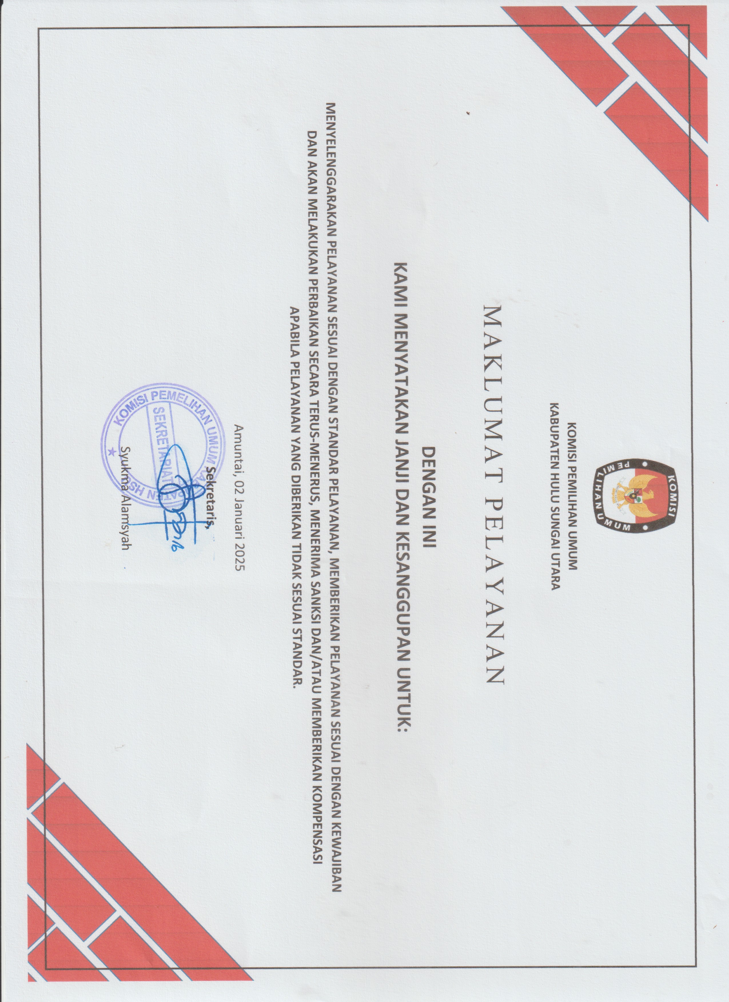 MAKLUMAT PELAYANAN KPU KAB. HSU