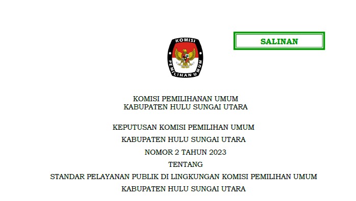 STANDAR PELAYANAN PUBLIK DI LINGKUNGAN KPU KABUPATEN HULU SUNGAI UTARA Senin, 02 Januari 2023 08:00 16 Klik disini untuk info lebih lanjut Bagikan: Dilihat 16 Kali.