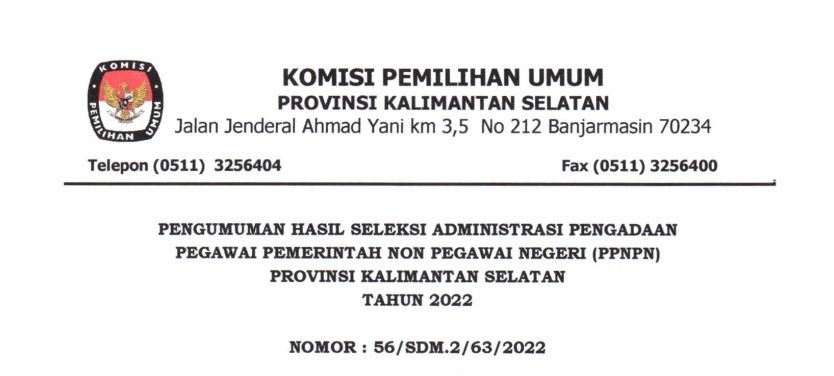 KPU Provinsi Kalimantan Selatan Umumkan Hasil Seleksi Administrasi Pengadaan PPNPN Sekretariat KPU Prov & KPU Kab/Kota se Kalimantan Selatan