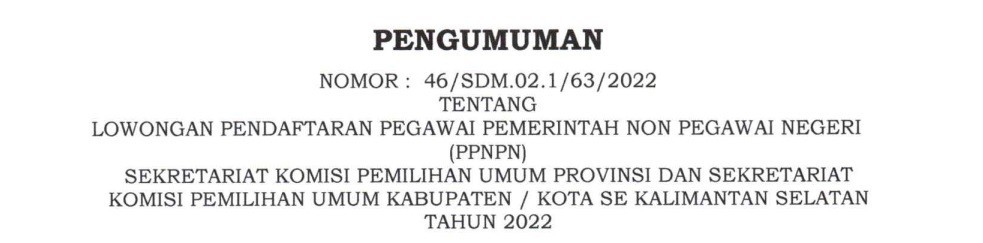 Lowongan Pendaftaran PPNPN Sekretariat KPU Prov & KPU Kab/Kota Se Kalimantan Selatan