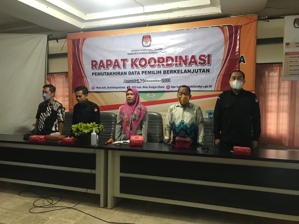 (Amuntai, 29/12/2021) KPU Kabupaten Hulu Sungai Utara melaksanakan Rapat Koordinasi Daftar Pemilih Berkelanjutan Desember (Triwulan IV) Tahun 2021.