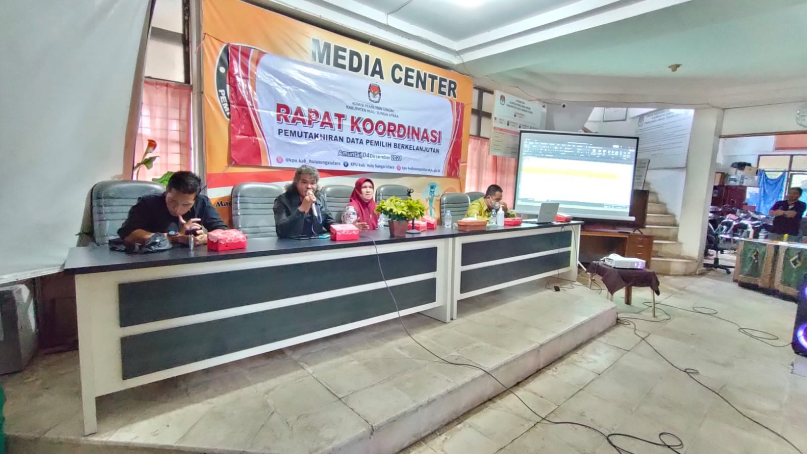 (Amuntai, 04/12/21) Sabtu tanggal 4 Desember 2021 bertempat di Kantor KPU Kabupaten Hulu Sungai Utara, pukul 09.30 WITA, KPU Kabupaten Hulu Sungai Utara melaksanakan Rapat Koordinasi Daftar Pemilih Berkelanjutan Periode November 2021 tingkat Kabupaten Hulu Sungai Utara.