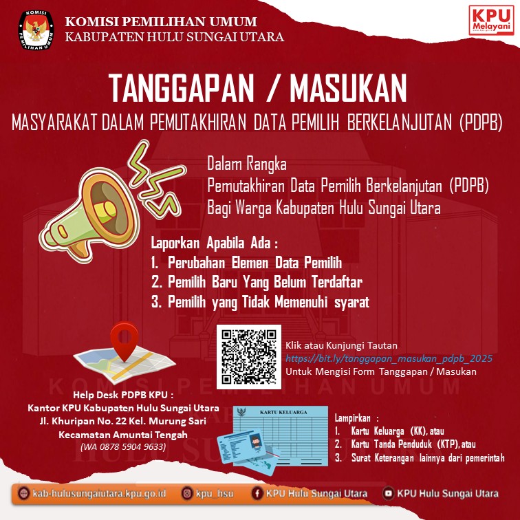 TANGGAPAN / MASUKAN MASYARAKAT DALAM PEMUTAKHIRAN DATA PEMILIH BERKELANJUTAN (PDPB) TAHUN 2025 KPU KAB. HULU SUNGAI UTARA